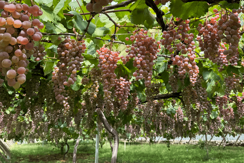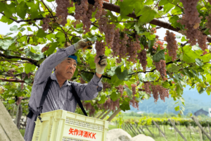 「県ジンプロジェクト」は、47都道府県の特産品をボタニカルに使用したクラフトジンを開発し、地域の魅力を発信する取り組みです。第15弾となる山梨県で着目したのは、日本ワイン発祥の地・山梨を象徴する「甲州ぶどう」。その起源は古く、1000年以上の歴史を持つとも言われる、日本固有の品種です。きれいな藤紫色の果皮が特徴で、山梨県は全国一の生産量を誇っています。甲州ぶどうからつくられる白ワインは、ワイン県・山梨を代表する「甲州ワイン」として世界でも高い評価を得ています。
