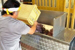 今回、「山梨県ジン」の開発にあたり、甲州ワインの製造工程で発生する「搾りかす(ポマース)」に着目しました。